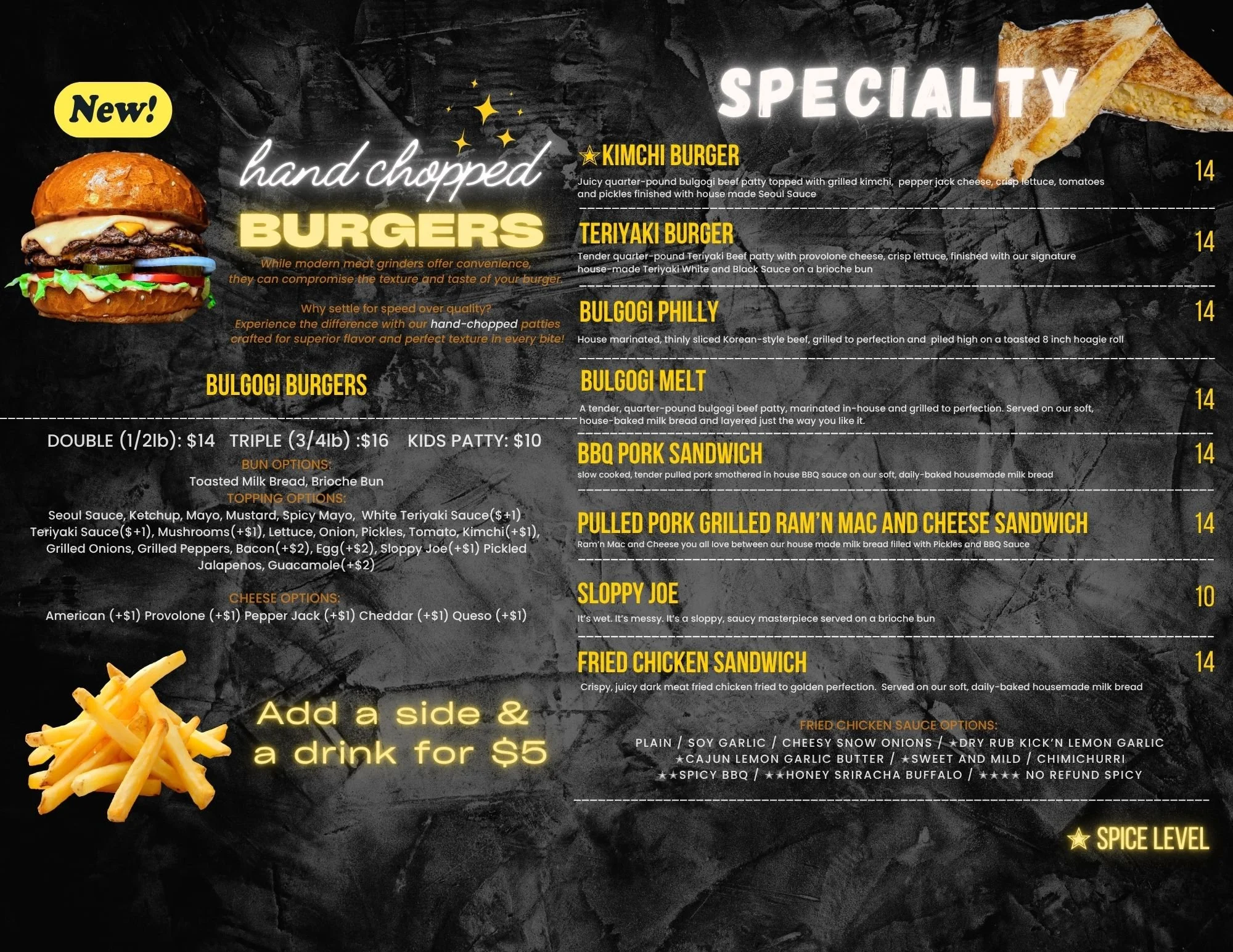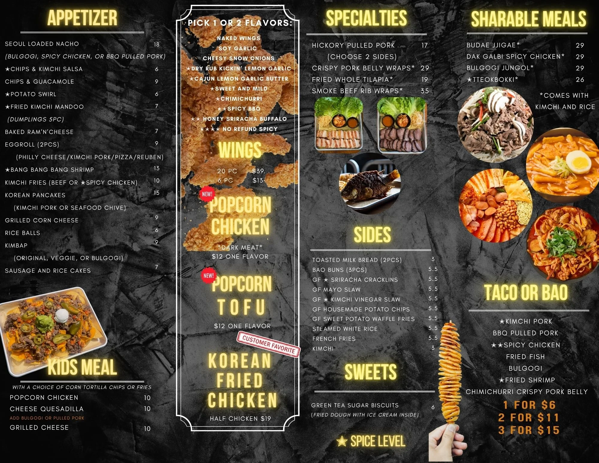 Join us in a lively atmosphere where authentic Korean street flavors meet interactive dining, playful drinks, and unforgettable moments. Whether you’re here for sizzling Korean shareable dishes, soju games with friends, or late-night bites that hit the spot, our pocha-style pub brings the streets of Seoul straight to your table!